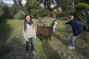 Danach waren wir noch in einem Restaurant in der Nähe zum (Nach)Mittagessen. Es gab Erdbeersaft, Suppe mit Quinoa und Reis mit Hühnchen und Salat. Währenddessen hat einer angefangen zu singen und mit einer Art Minigitarre zu spielen und ein paar Leute haben dann auch dazu getanzt 😀 Draußen haben wir dann noch entdeckt, dass im Garten ein Lama stand! 😀 Pia hat sich sogar getraut, es mit Grashalmen zu füttern ^^ Danach gings dann zurück nach Quito.
