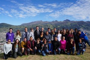 Nach einer halben oder Dreiviertelstunde haben wir dann auf einer Anhöhe Pause gemacht. Dort hatten wir eine phantastische Aussicht auf Quito. Dann haben alle Photos gemacht und natürlich auch ein Gruppenphoto.