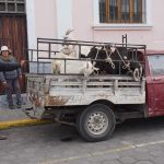 Nach weiteren zwei Stunden Fahrt kamen wir an unserem ersten Ziel an, dem Dorf Saquisilí. Dort gibt es jeden Donnerstag einen riesengroßen Markt, eigentlich ist einfach die ganze Stadt ein einziger Markt ^^ Und man kann dort wirklich ALLES kaufen. Von Fisch über Obst und Gemüse über Kleidung und Möbel (ganze Sofagarnituren und Doppelbetten) bis hin zu Tieren. Die Tiere haben mir wirklich leidgetan. Tiere sind hier nur Ware, Meerschweinchen, Hasen, Gänse und Hühner nur zukünftiges Essen und werden in so kleinen Käfigen gehalten, dass sie auf- und übereinander sitzen müssen. Auch Katzen und Hunde gab es, die werden zwar nicht gegessen, aber haben es auf dem Markt trotzdem nicht besser. Janeth hat mir erzählt, dass sie auf genau diesem Markt letztes Jahr Nacha gekauft hat. Dort gab es sooo süße Katzenbabys, die nur zwei Dollar kosten sollten!! Ich war versucht, den ganzen Käfig zu kaufen ^^‘